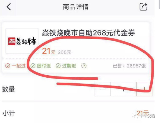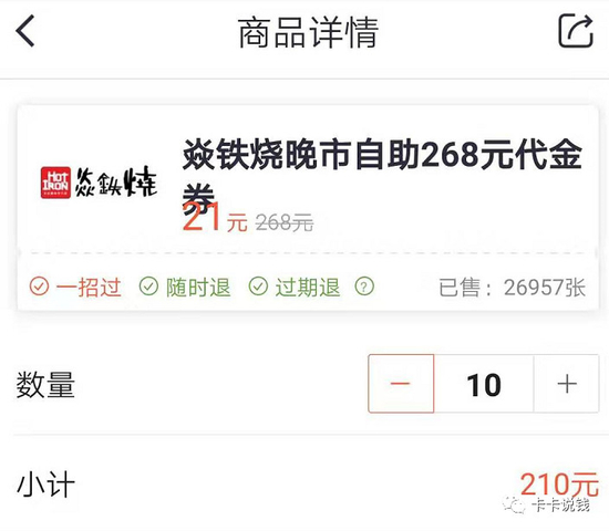 结果前天北京一家叫“焱铁烧”的自助烤肉餐厅,原价268一个人,在掌上生活APP售价只需要21元一张。