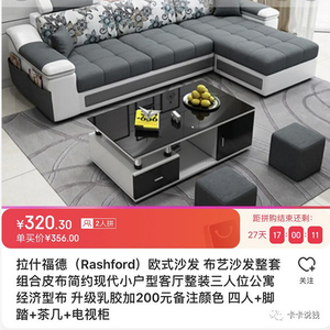 一整套三人位+妃位沙发+茶几+脚踏+电视柜,竟然只要320元。