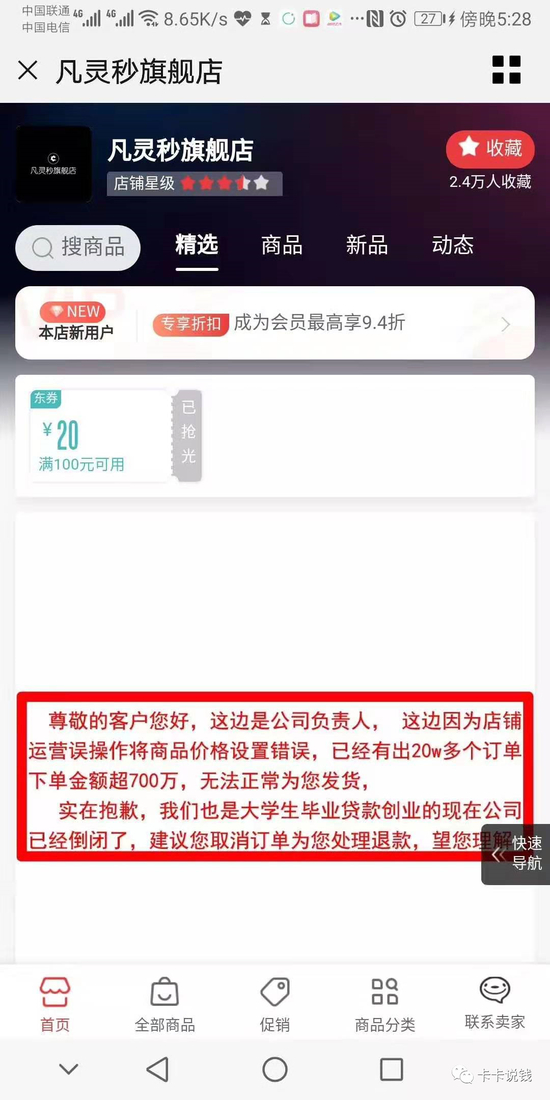 再去该店铺首页,能看到一则醒目公告: