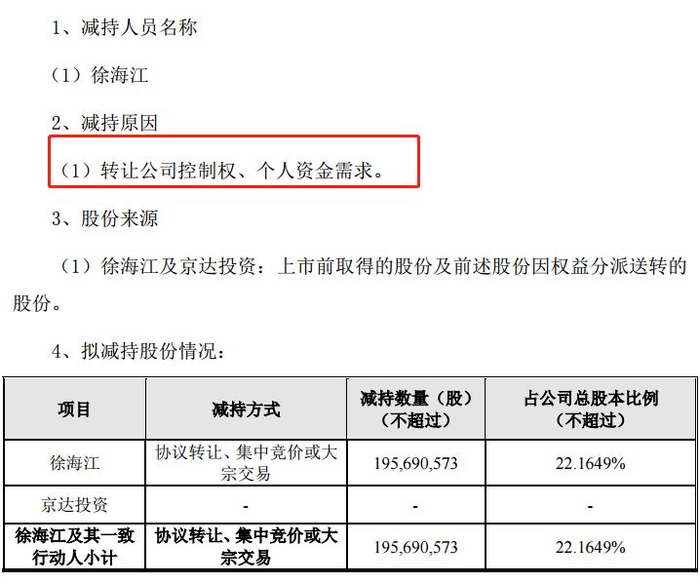徐海江要直接甩卖22%,清仓比例接近8成!