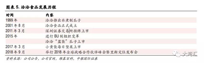 2018 年 9 月,举行 2018 年全球战略合作伙伴峰会暨里斯定位发布会,会上提出夯实瓜子主干,同时用 5 年时间将每日坚果打造成公司未来的主干,瓜子做到 60 亿体量,每日坚果做到 40 亿体量,使公司成为百亿量级公司。