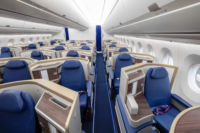 南航订购的20架A359分为两种布局,目前首架采用三舱314座布局,28个商务舱、24个明珠经济舱和262个经济舱,而还有部分机型是没有明珠经济舱座椅的,两舱布局下座位总数为335座。