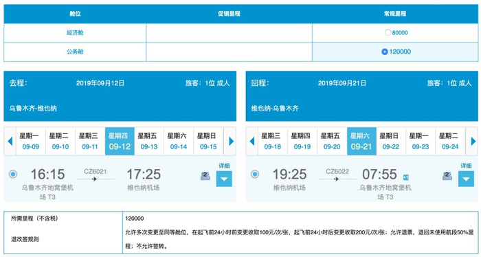 因为南航的里程需求基于飞行里程计算,5,001-7,000公里的飞行距离,单程商务舱都只需要60,000里程,那么新开的乌鲁木齐-维也纳航线就非常给力了,这对于住在大西北的朋友(比如兰州、西安)而言是一个大利好,毕竟去欧洲又多一个新选择。