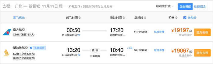 对了,180,000南航里程不仅仅可以去欧洲,还可以躺飞新西兰基督城。这条航线算是国内直飞基督城的独苗了,国泰也仅仅在冬季(12月-次年2月)开通季节性航班。关键是,相比起国泰,南航的放票实在是太慷慨了,一趟航班竟然放了超过9个商务舱位置。