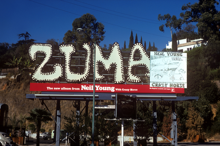 “《祖玛》是那个时代我最喜欢的专辑之一。没有多少人看过这些广告牌,也很难说明它和卖唱片究竟有什么关系,但是许多唱片公司的经理和工作人员都把他们的办公室设在那条街上,这对明星而言就意义重大了。如果尼尔·杨要来见他的经理,他就可以看到日落大道上的广告牌,这有些自负意味。他们自言自语或者和周围人说话时,谈生意就会比谈论其他东西多得多。”