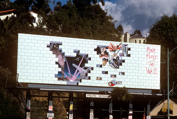 “当这个广告牌第一次出现的时候,没人知道它是什么。上面画的全是砖块。它就好像在那放置一段时间之后,一点一点地,砖块开始脱落,显露出下面的设计。它是一种‘互动广告牌’,灵感来源于唱片套。这就是他们所谓的‘折叠专辑’——当你打开由杰拉尔德·斯卡夫设计的专辑时,你会看到根据唱片中的人物绘制的卡通形象:母亲、老师,以及一个叫‘平克’的小孩。”