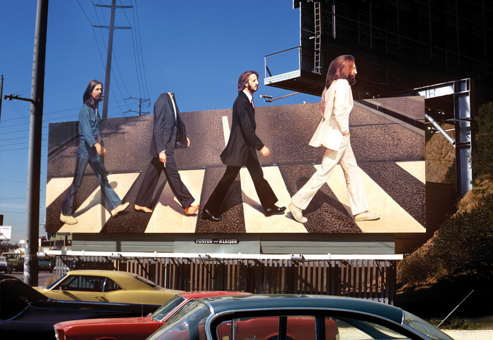 一个大半张脸都被墨镜遮住的金发女郎,沿着日落大道,在棕榈树和广告牌之间游走——这种景象令人难忘。纽约塔唱片公司在这条街附近,罗伯特·兰多从小就在他们楼上长大,他经常目睹这种景象。某天,他突然意识到,这些硕大的、点缀在美国最富传奇色彩街道上的广告牌,最终都会消失。于是,他开始将行进中的披头士、燃烧着的斯普林斯汀以及歌手雪儿的专辑宣传广告牌拍摄下来——在摇滚乐鼎盛的60到80年代,它们笼罩着洛杉矶。兰多的作品将会以书本《日落大道的摇滚广告牌》(Rock ’n’ Roll Billboards ofthe Sunset Strip)以及纪录片《时代的印记》的形式呈现。这些作品并非快照集锦,而更像一种从美国身份中直接流淌而出的意识流。以下是摄影师分享的几幅他的得意之作。