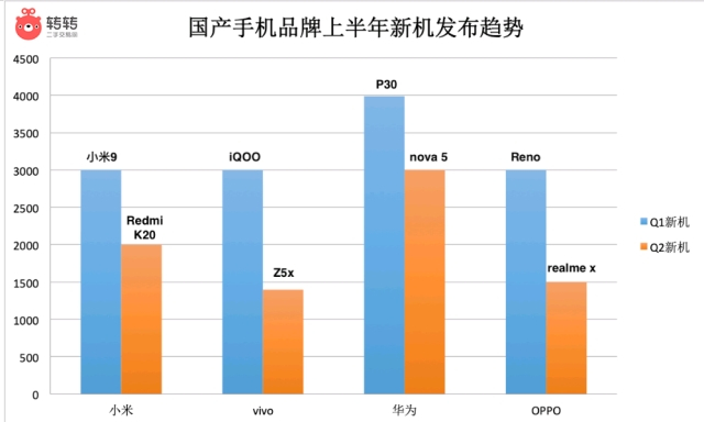此外数据显示,相比第一季度各大手机厂商的中高端机“旗舰争锋”,第二季度各家推出的国产新机纷纷转向了中低端市场,主打性价比以求冲高销量。