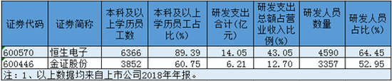 恒生电子员工学历结构优于金证股份