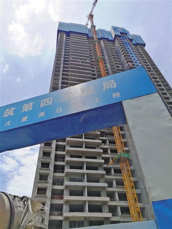 该盘规模同样很小。公告显示,占地面积只有5000多平方米,规划由两栋51层高的塔楼组成,据目测已经完成40多层结构建设,现场工人的施工还在有序进行。不过在项目围墙上,记者看到的施工牌上面写着“竣工验收日期为2018年6月”,而在粤泰股份的年报中,该项目的竣工时间为2020年12月。