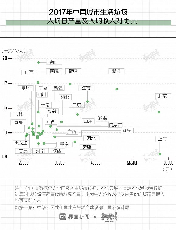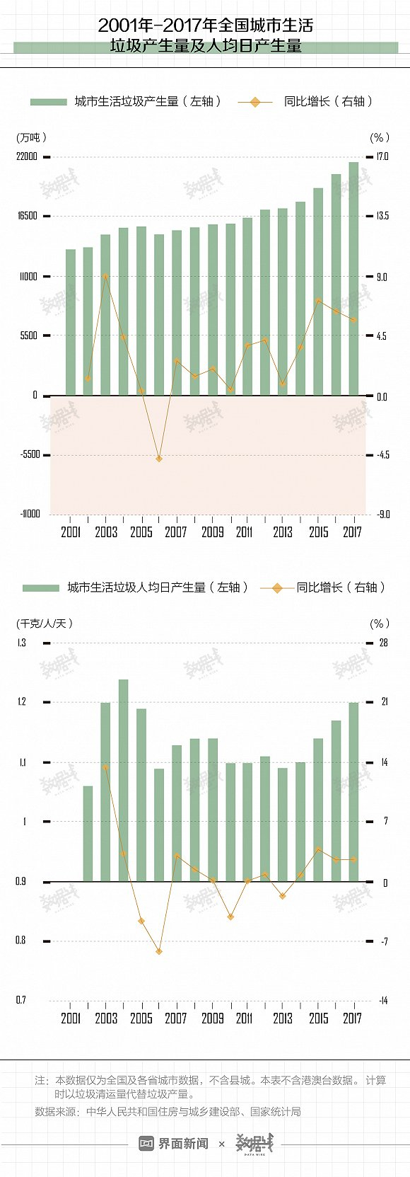 原标题:数据 | 近18年中国多了8051万吨城市垃圾,北京上海居首