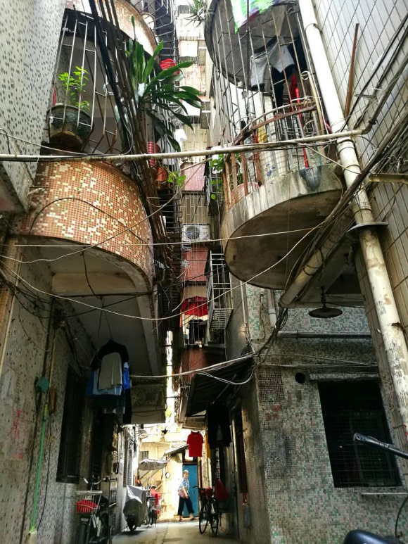 一切城中村该有的元素,都在深圳最大的城中村白石洲内体现:拥挤,嘈杂,混乱,与外部的高楼景象形成视差。