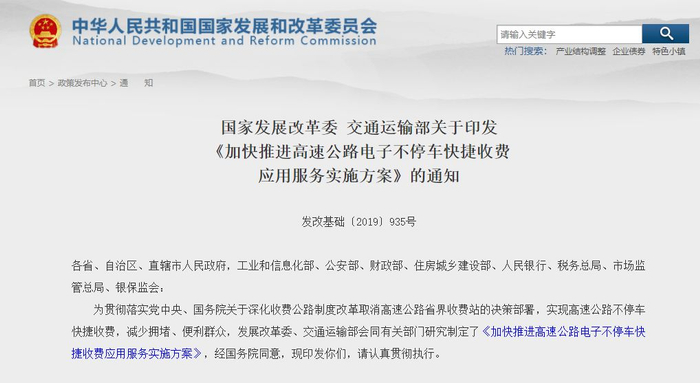 6月初,国家发展改革委、交通运输部印发《加快推进高速公路电子不停车快捷收费应用服务实施方案》(下称《实施方案》)。