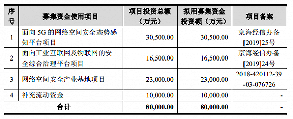 恒安嘉新对2019年上半年报还进行了预测。其表示,由于移动互联网恶意程序防护产品和互联网僵尸木马蠕虫防护产品收入增长较多,预计收入增幅39.64%至46.8%;净利润方面由于毛利率的大幅增长,预计同比增长523.27%至581.25%。此番,恒安嘉新欲募资8亿元,投入“面向5G的网络空间安全态势感知平台项目”等。