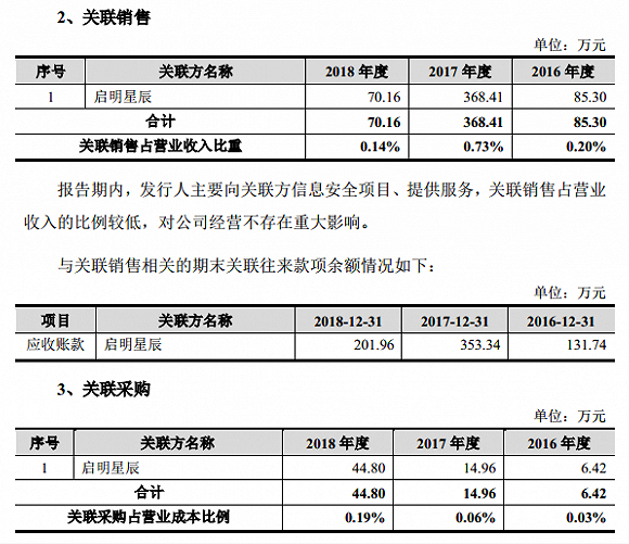 说起来,启明星辰和恒安嘉新尚有关联交易,虽然占比并不高。