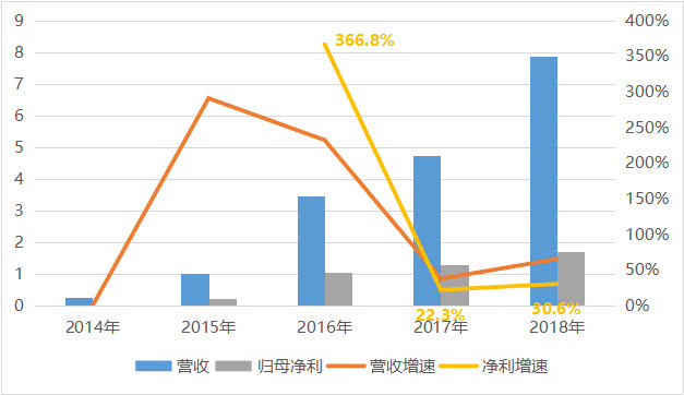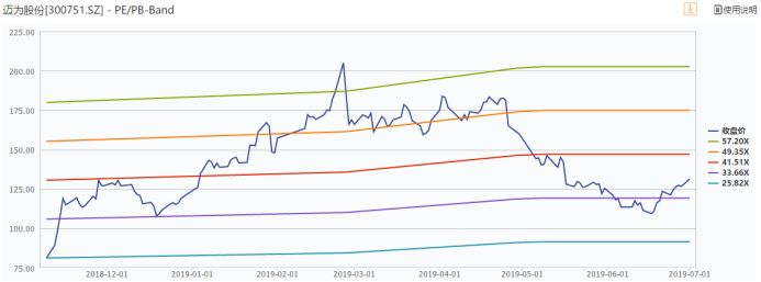 迈为股份是2018年上市的,财务数据比较近,从近年的增速看,公司营收、净利润都保持了不错的增长。而根据研究员给出的一致预期,2019年的预测归母净利润为3.05亿,即同比增速接近80%。