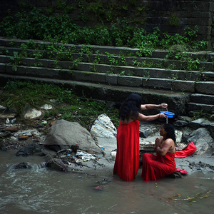 尼泊尔加德满都,印度教女信徒在巴格马蒂河中沐浴祈祷,庆祝潘恰米节(Rishi Panchami)。潘恰米节,又称为夫祈祷节,是提吉节的最后一天,在这一天妇女们要朝拜七位圣人,请求他们对她们在全年月经期间罪孽的原谅。印度教认为行经期是不纯净的,所以女人们在经期会被禁止参加一切宗教活动。