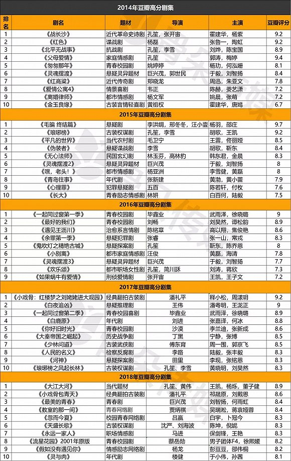 原标题:豆瓣5年剧集成绩单,高分剧背后的审美变化