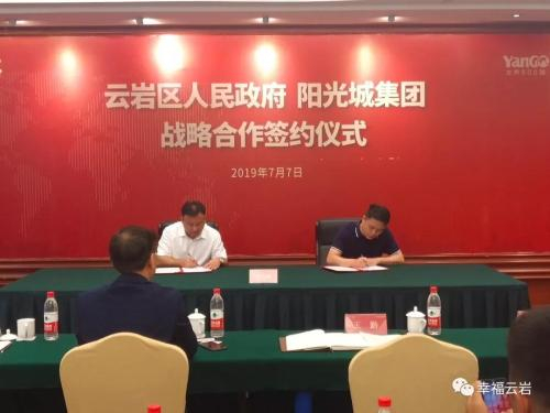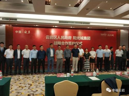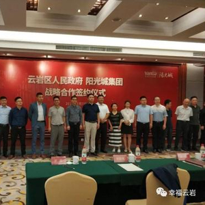 7月7日,云岩区人民政府与 阳光城 集团在贵州省国际会议中心一楼4号厅举行战略合作签约仪式,就人民大道(云岩段)飞山街地块、三马片区C-04地块以及文昌阁周边改造地块等3个地块的开发建设签署战略合作协议。区委副书记、区政府区长王黔代表云岩区人民政府与阳光城集团贵州区域总裁罗军签订战略合作协议并致辞。阳光城集团执行副总裁吴建斌在签约仪式上作了发言。