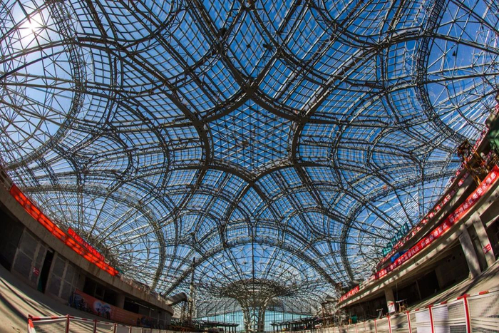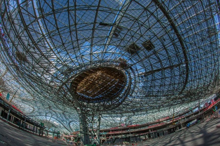 大兴机场航站楼屋面钢结构为双曲面造型,屋檐最大悬挑47米,高低落差达到27米,耗费118723个杆件,20772个焊接球,连接指廊的6条采光天窗,使航站楼核心区安装合拢线达到2600米,造型与施工难度可想而知。