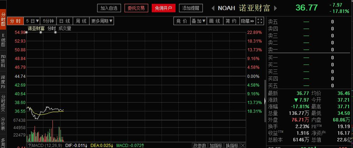受此影响,诺亚股价开盘后大跌,最大跌幅超过22%。