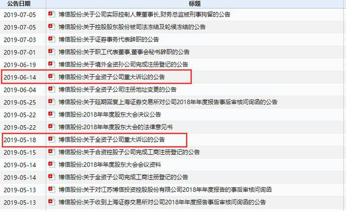 值得一提的是,博信股份子公司的经营问题也开始暴露。5月18日,博信股份披露称,博信智通被拖欠775.74万元货款,因而向法院提起诉讼;6月14日,上市公司再度披露称,博信智通被拖欠1.19亿元货款,其将客户告上法庭。