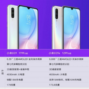 [TechWeb]7月2日,小米在北京水立方召开全新的小米CC系列新品发布会,推出了小米CC9、小米CC9e和小米CC9美图定制版三款新机,其中,小米CC9和小米CC9美图定制版已于7月5日首销。现在有最新消息,据官方预告,另外一款新机小米CC9e也将于今日上午10点正式发售,售价1299元起。