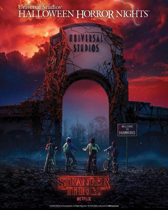 甚至Netflix还凭借这一IP首次涉足了实景娱乐领域,去年九月环球影城推出的“万圣节恐怖之夜”以1980年恐怖元素为主,其中就包含与Netflix、《怪奇物语》的创作者Matt and Ross Duffer以及执行制片人Shawn Levy的合作,游客们能够在这一限定乐园中体验到以剧中的平行宇宙——Upside Down为主题设置的各种主题的鬼屋迷宫,甚至平行宇宙中的怪物“夺心魔”也出现在了这一场景中。
