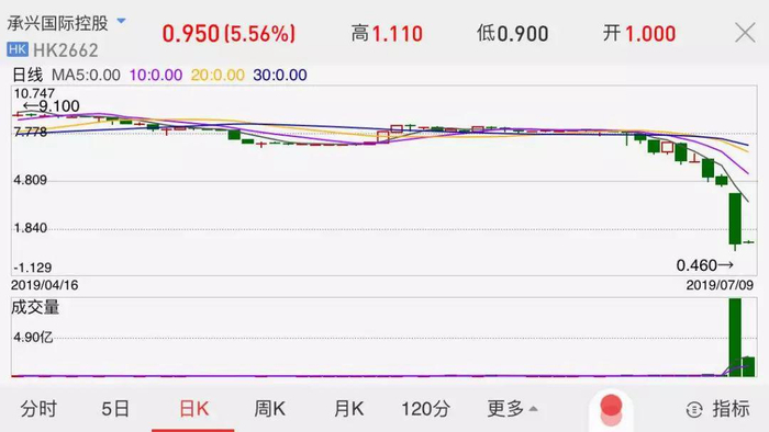 不过,罗静旗下的港股公司承兴国际控股的7月5日大跌8.93%,7月8日暴跌80.39%,截至发稿,今日涨5.56%,三个交易日市值蒸发44亿港元,目前总市值仅剩10亿港元。
