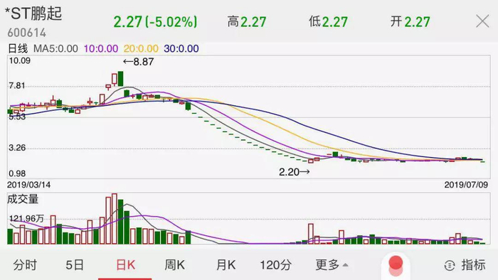值得注意的是,*ST鹏起2018年报显示,公司去年亏损38.1亿元,同时审计机构对公司年报出具了无法表示意见的审计报告,此后公司曾连续19个交易日跌停。