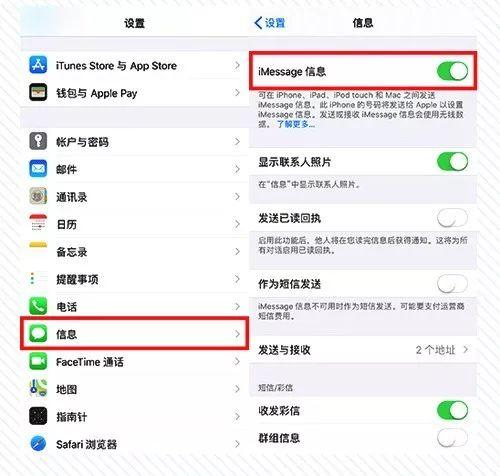 打开设置--信息--IMessage,点击“关闭”(不过此举也意味着用户不能使用IMessage收发信息)。