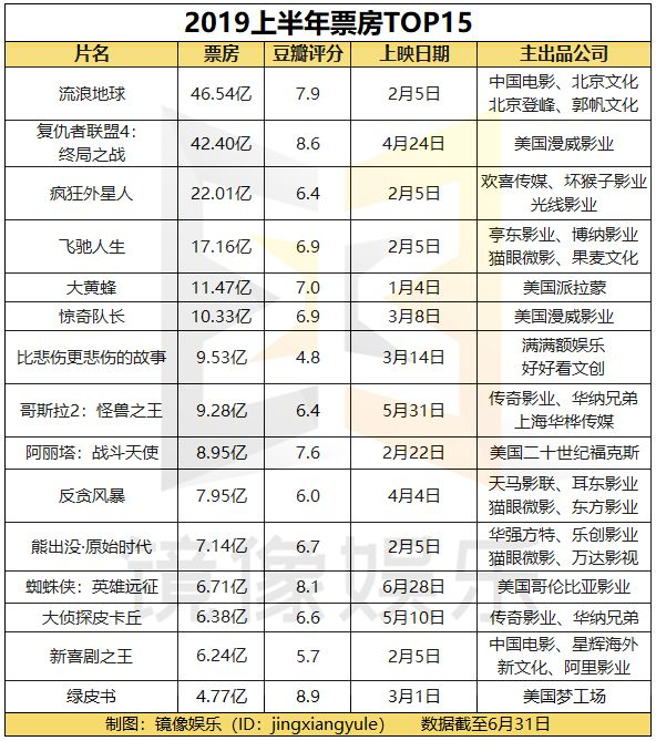 2019上半年电影总结:票房、人次均下滑 进口片反超