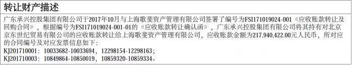 从时间来看,歌斐资产与广东承兴最早的转让登记发生在2017年10月,转让标的即为广东承兴控股对北京京东世纪贸易有限公司的2.18亿元应收账款。