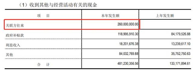 2018年公司收到关联方往来款2.6亿元,由此提升了报告期内的现金净流入规模。值得一提的是,虽然大北农与关联方之间的关联交易由来已久,但上年同期公司收到其他与经营活动有关的现金项目中,却并无此类往来,另外公司在年报中也未对这2.6亿元的具体内容进行说明。