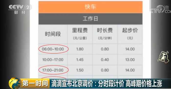 滴滴宣布北京调价:分时段计价 高峰期价格上涨
