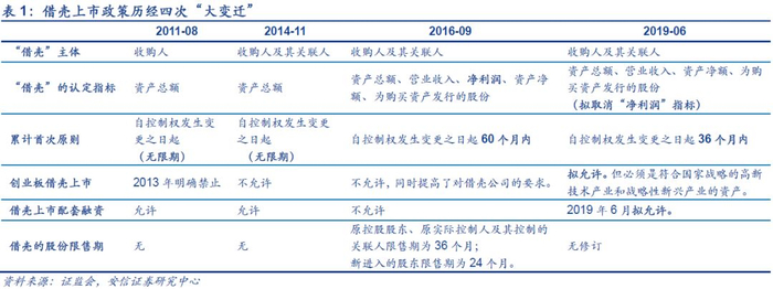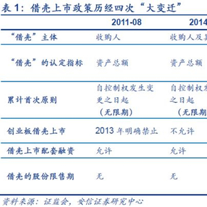 自2018年9月以来,政策风向再次转变。目前证监会正逐步谨慎放宽借壳上市要求,拟允许符合条件的创业板公司借壳上市,拟允许“借壳”配套融资,意在使借壳上市的公司实现大股东“新陈代谢”,突破主业瓶颈,提升公司质量,特别是提升创业板公司的资产质量。