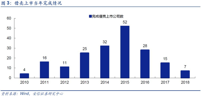 2011-2013年是中国经济快速下行的3年,在2011年8月重组政策出台之时,A股已历经2年熊市行情。这段时间,许多公司资产质量严重下滑,A股公司亟需新陈代谢。因此,借壳上市就成为A股许多壳公司实现自救,增加自身价值的主要途径。