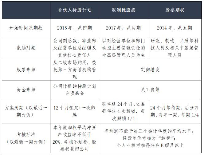 美的合伙人持股计划本质上为业绩股票,针对公司总裁及总经理级别高管,从公司利润中计提专项基金在二级市场购买股票,根据考核结果发放给核心高管的方式,促进公司“经理人”向“合伙人”的身份转变,凝聚一批具备共同价值观的时代奋斗者和事业带头人,促进公司长期稳健发展。