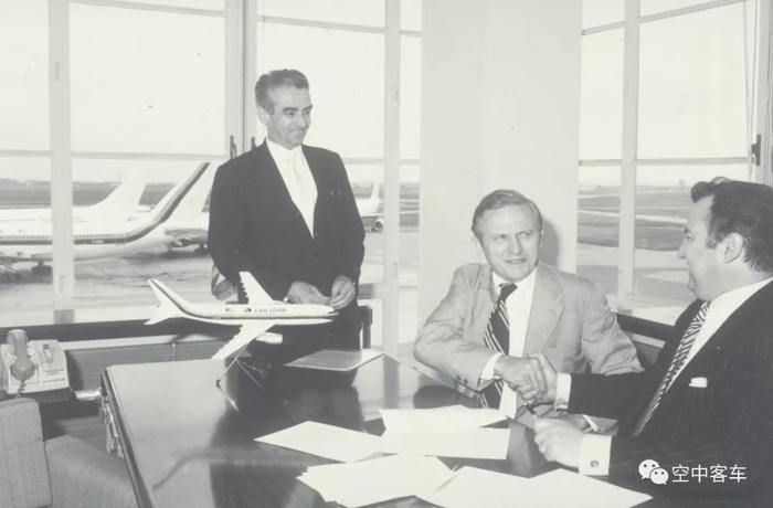 图:在贝泰耶(左)的见证下,A300获得首家美国客户订单