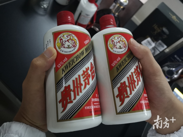 工作人员介绍道,还可以从外包装上进行甄别。比如,酒帽是否重复使用;接口是否用胶水粘贴;接口是否不整齐、无法还原;酒瓶上的图标是否不够清晰。