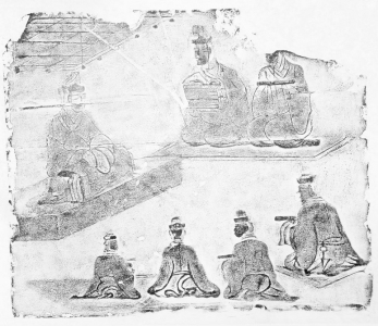 汉代传经讲学画像砖拓片。