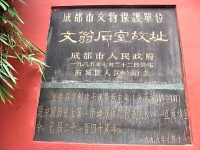 文翁石室故址为成都市文物保护单位。