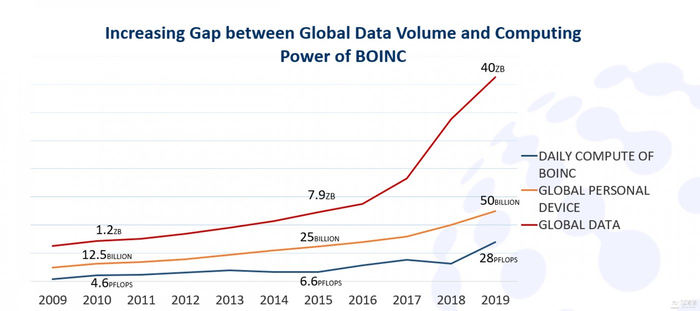 BOINC的算力与全球数据量的增长差距