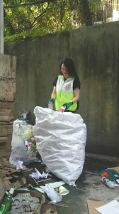 吴佳碧打包塑料瓶。