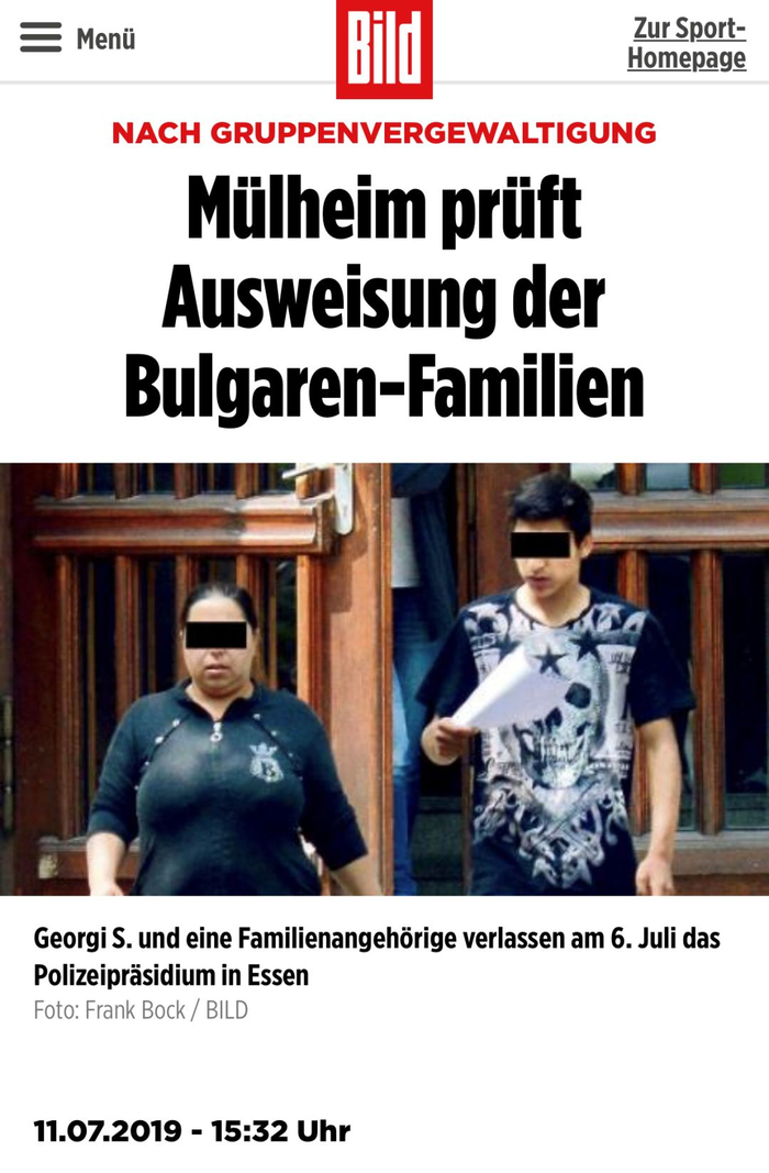 德国《图片报》:轮奸事件后,米尔海姆对驱逐这些保加利亚家庭进行审核(图中画面系参与轮奸的一名保加利亚籍男孩与其家庭成员7月6日离开埃森警察总局)