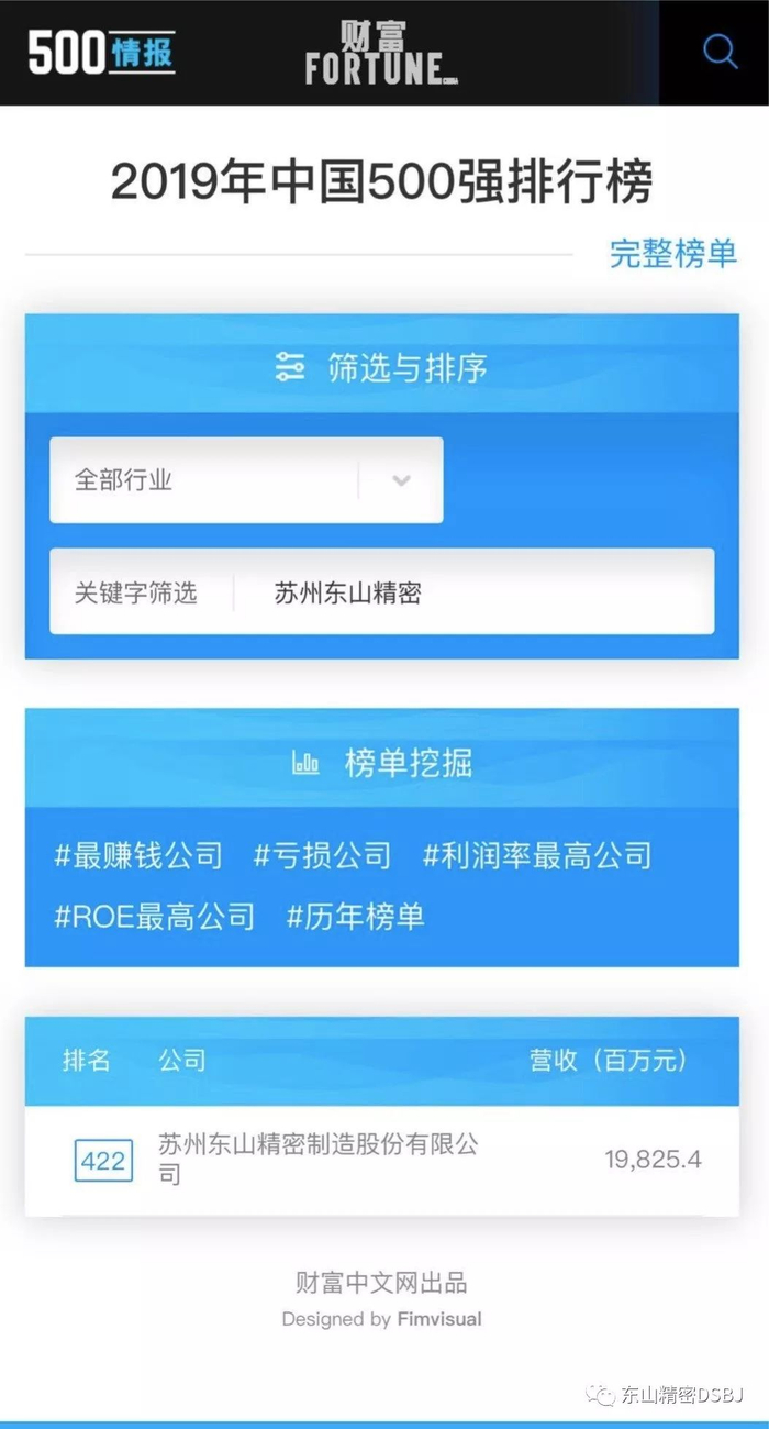 原标题:东山精密荣登《财富》2019年中国500强、2019苏州民营企业50强 来源:东山精密DSBJ