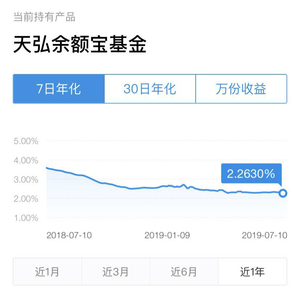 7月10日天弘余额宝收益率2.263% 来源:支付宝