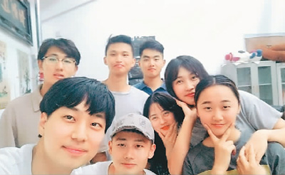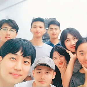 柳炫守(前排左一)在烟台大学交换学习期间和同学合影。 |
