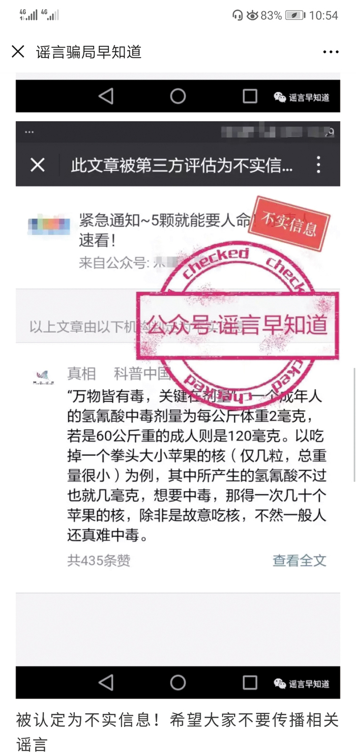 根据该网友提供的公号链接,记者发现确实有不少公号发布的文章标题夸大,甚至有不实内容。例如一篇题目为《5颗就能要人命?正大量上市,你肯定吃过!赶紧看》的文章,其内容为转载某地方电视台的新闻报道,讲的是吃樱桃核中毒的一则案例,但该文章将此断章取义为“5颗(樱桃核)就能要人命”。记者查询小程序“微信辟谣助手”发现,该条信息为谣言。