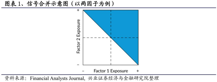 信号合并是一个单步的投资组合构建过程:将不同因子的信号(即得分或排名)合并为一个复合信号,直接根据复合信号来构建投资组合。例如,对于股票集之中的每只股票,价值因子信号和动量因子信号被直接合并为一个价值-动量复合信号,然后根据这一复合信号构建价值-动量投资组合。